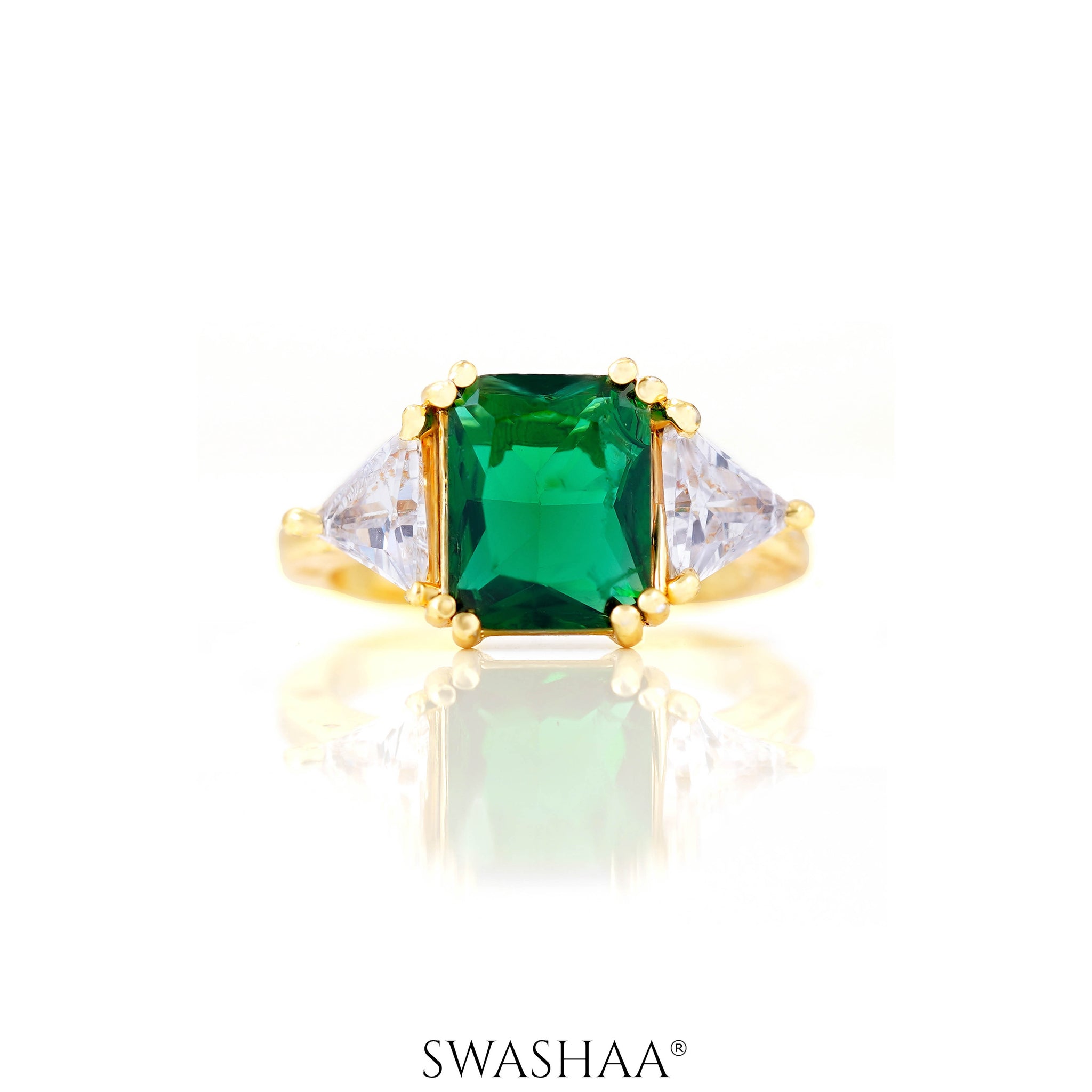 Tanaya Emarald 18K Gold Plated Ring